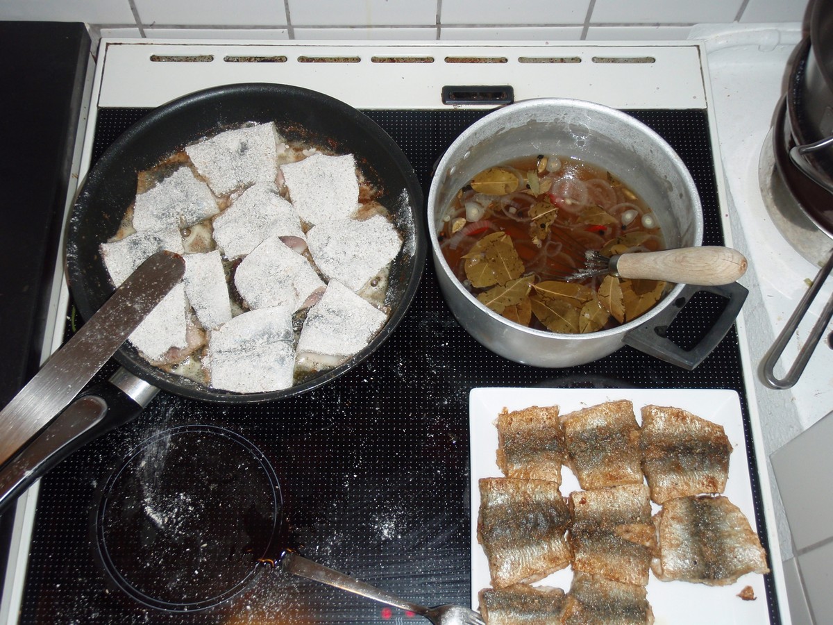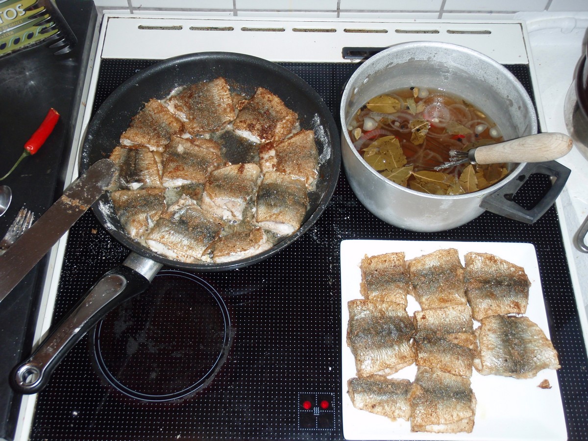 Klip rygfinner af fileterne og vend dem i rugmelsblandingen.